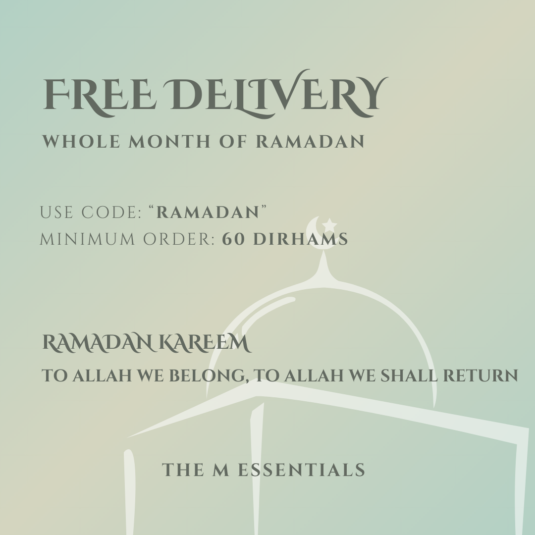 Use Code "RAMADAN" at the check out to avail Free Delivery, if your orders are of 60 dirhams and above.