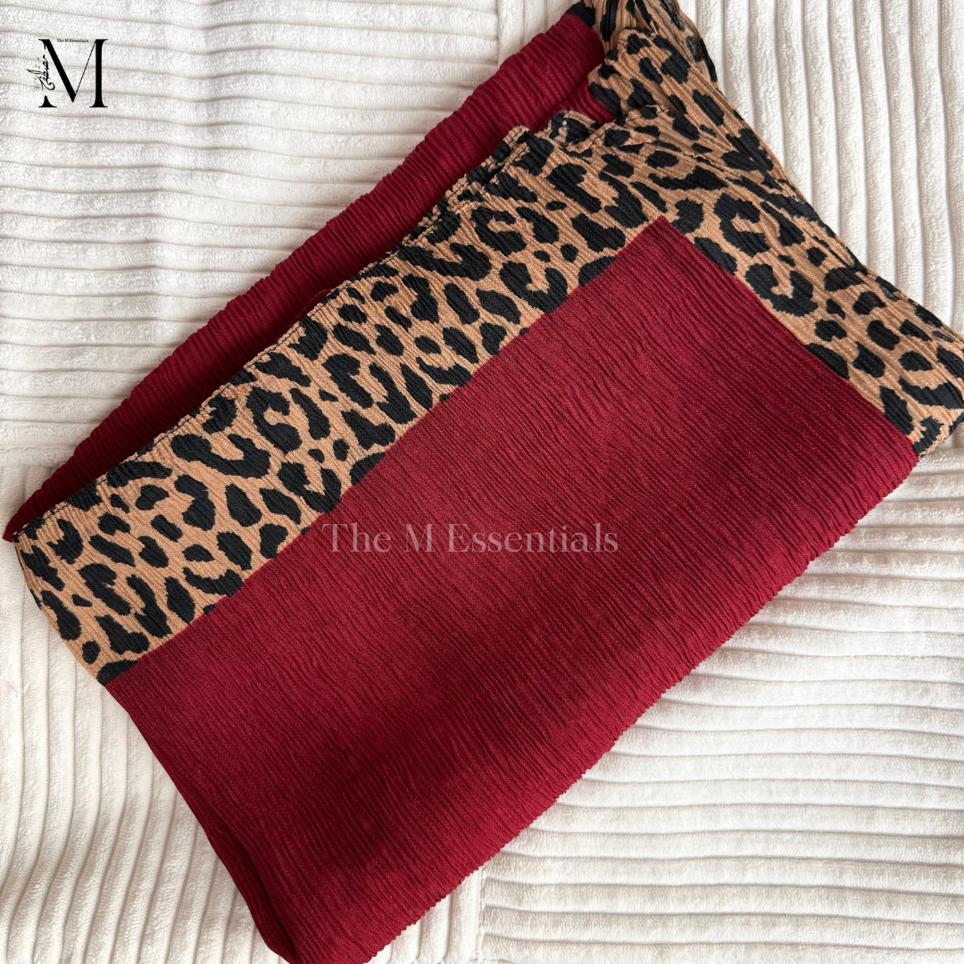 Digital animal print crinkle chiffon hijab in color Maroon