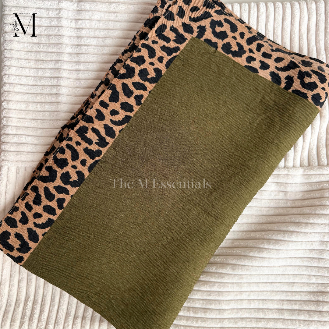 Digital animal print crinkle chiffon hijab in color Olive Green
