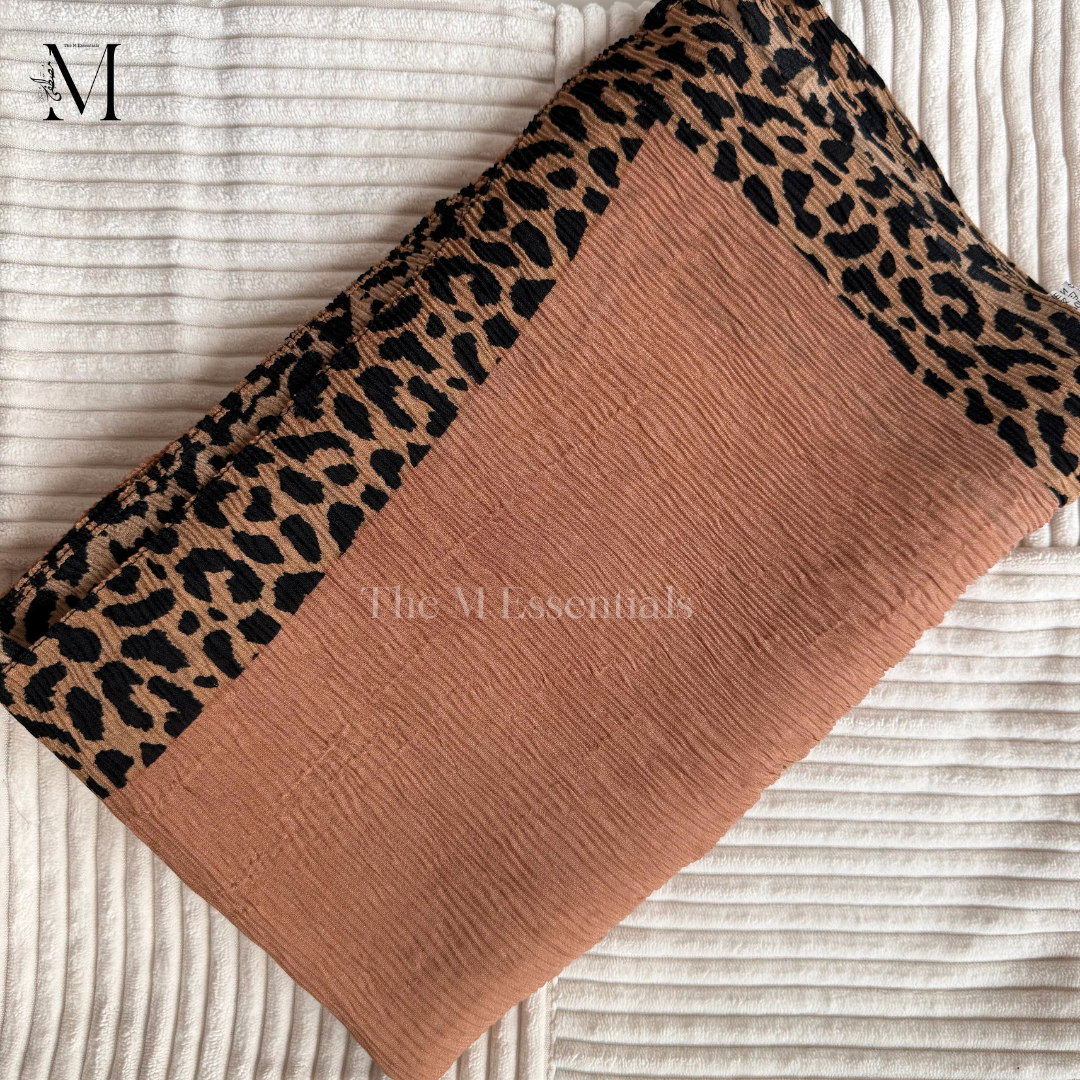 Digital animal print crinkle chiffon hijab in color Light Brown.