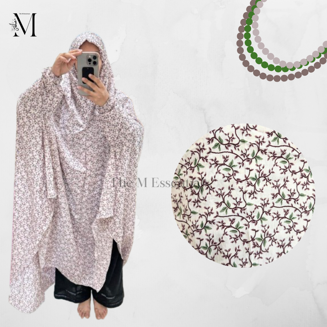 Makhani Hijab or Namaz Chaddar in soft cotton printed fabric with elastic sleeves and elastic headband.